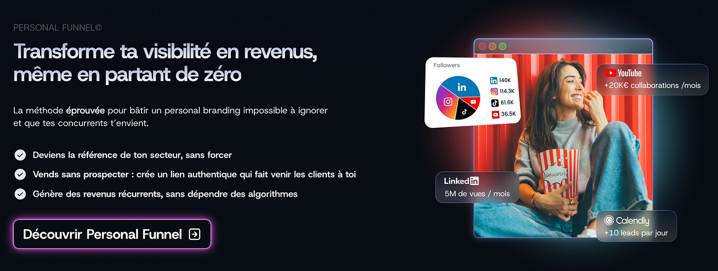 Je lâche tous mes prestas de confiance, contacts éditeurs, outils et process dans Personal Funnel, mon programme pour transformer ton autorité en nouveaux revenus.